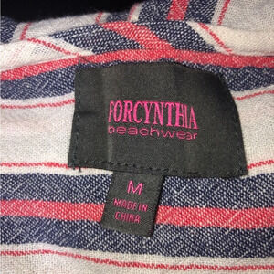 For Cynthia Coverup M Striped Blue/Red/White Pockets Hooded Boho Hippy