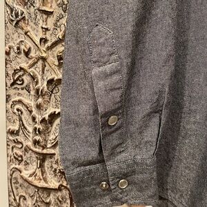 For Him London M heathered gray shirt with pearly snaps and front pockets