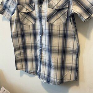 For Him U.K. blue white Plaid button up Shirt short sleeve Size L