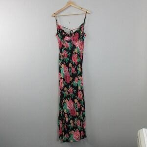 For Love & Lemons Becca Backless Maxi Dress XS Black Pink Floral Slit Party 226