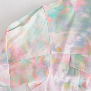 For Love & Lemons Delphine Tie-Dye Print Cropped Denim Button Up Jacket L NWT