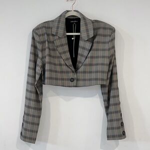 For Love & Lemons Kym Brown glen check Plaid Cropped Blazer Size Large