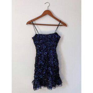 For Love & Lemons Rodin Iridescent Lace Mini Dress Blue Noir Size XS