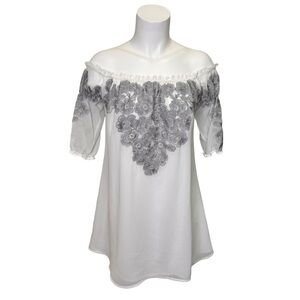 For Love & Lemons Sicily Off shoulder Floral Embroidery Mini Dress Size XS