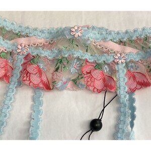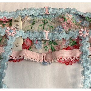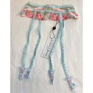 For Love & Lemons sz XXS Garter Belt Swaying Rose Blue Pink Embroidered New NWT