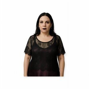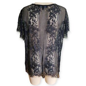 For Love and Lemons Black Semi-Sheer Lace Overlay Top Size L