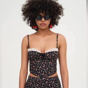 For Love and Lemons Camille Top Black Floral Crop Corset Flowers Roses Frills
