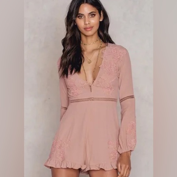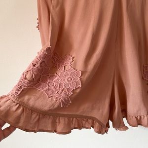 For Love and Lemons Lilou Dusty Pink Floral Applique Bohemian Short Romper S