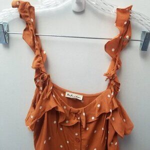 For Love and Lemons Natalia Midi Polka Dot Orange Saffron Dress XS