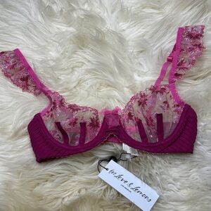 For Love and Lemons Ophelie Mesh Floral Underwire Bra Pink XXS
