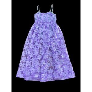 For Love and Lemons Sz S Dress Villegas Floral Sheer Bodysuit Midi Purple New