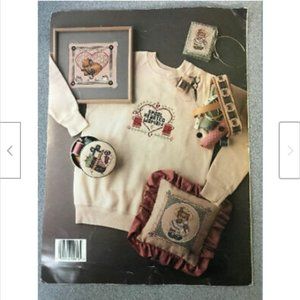 Leisure Arts #616 cross-stitch pattern booklet with 7 full color graphed patterns to choose from. Cute motifs & sayings for those who enjoy needlework, like teddy design with saying "I counted my stitches from 1 to 20, and when I finished I had 3 too many". Includes project ideas to embroider, like aprons, tote bag, pin cushion & more. 6 pages, softcover, 9"x12". Good pre-owned condition, minor creasing on cover.