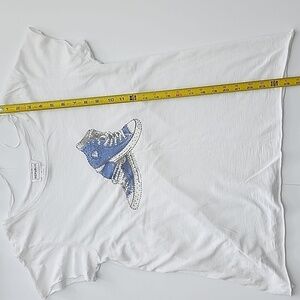 Excellent pre-owned condition, womens For The Republic, beautiful blue high top lace-up rhinestone detailed sneakers, white soft cotton t-shirt. Raw edge at hems. Super adorable! No stains, tears or holes. From a non-smoking home. Please see pics with measurements to ensure proper fit. Please don't hesitate to message me if you have any questions. 🛍 Bundle & Save when you buy more than one item in my closet!
