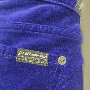 For all mankind Butt-flattering velvet Purple Blue pants 29 waist Leg 30.5