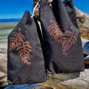 Ideal for gathering on forest walks or beach combing. Handmade sturdy military Cordura fabric with strong grommets and nylon cording. Water resistant. Camouflage or Black 8" x 14"