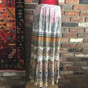 Forbidden Los Angeles. Boho Hippie Maxi Crinkle Broomstick Gems Festival Skirt