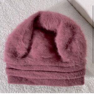 Forbusite Dusty Rose Pink Angora Wool Blend Beanie Beret Hat