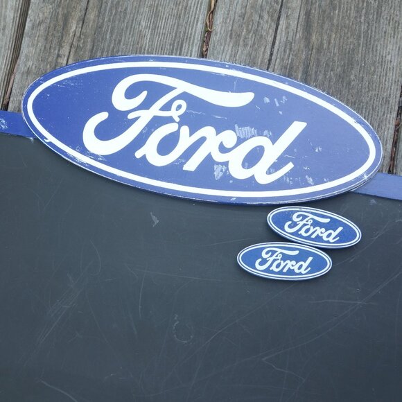Ford Motor Company Blue Wood Border Chalk Board with Two Ford Oval Magnets