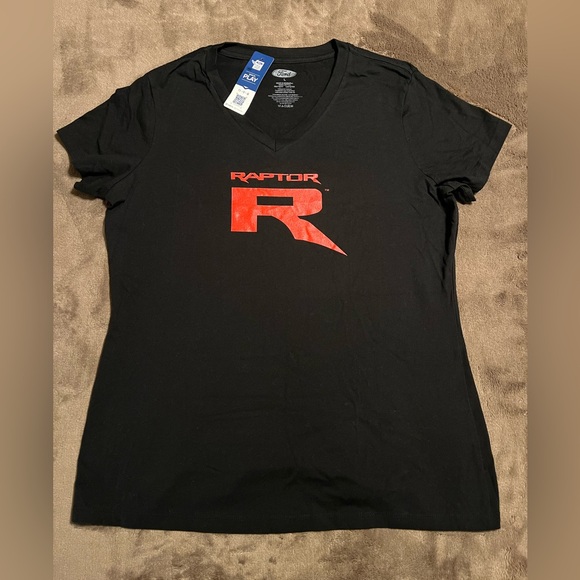Perfect fit for everyday wear, the Ford Trucks Women's Raptor R black short-sleeve v-neck t-shirt features a Raptor R logo printed in red on the center front with a ribbed collar and tag-less neck label for comfort.
