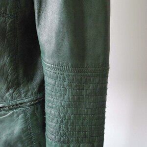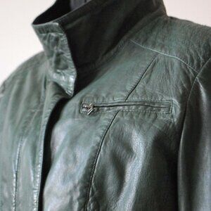 Bring in the Y2K Vibes with such a rich, rainforest green leather jacket.