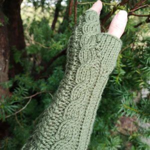 Forest Green HandKnit Fingerless Texting Gloves Mittens Armwarmers