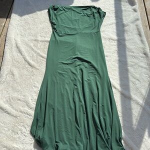 Make an entrance in this elegant forest green maxi dress, crafted from a soft, flowy fabric that moves with you. Featuring a flattering V-neckline, romantic cap sleeves, and a silhouette that skims the body beautifully, this dress channels effortless charm and timeless grace. Perfect for weddings, garden parties, or dreamy everyday styling—just add a denim jacket or statement heels and you’re set.