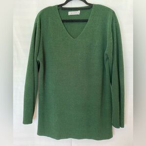 Forest Green V Neck Rib Knit Sweater Cozycore Longer Length Medium Jewel Tone
