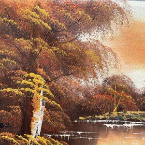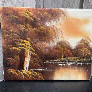 Forest and Lake Painting Acrylic on Canvas Original 10" x 8". Bought of elderly art collector, who had this in his collection for decades, in great condition with no issues, see pics.