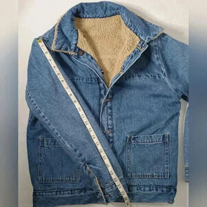 Forever 21 1990s vintage y2k Reversible Denim/Retro Sherpa Jacket Metal Button Sz Small.
