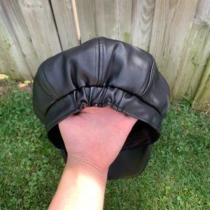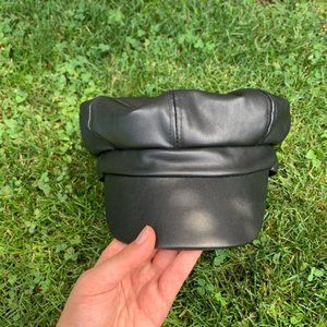 Super cute black faux leather conductor style faux leather hat by Forever 21. Very lightly worn. Elasticated back to fit multiple head sizes.