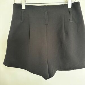 These chic black skorts from Forever 21 feature a high-waisted design with a stylish bow detail, offering a sophisticated look. The structured fabric ensures a flattering fit, making them perfect for dressy occasions. With a mid-thigh length, they combine the elegance of a skirt with the comfort of shorts.