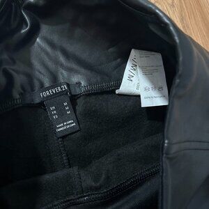 Forever 21 Black Faux Leather Leggings Pants Pull On High Rise Size Medium EUC