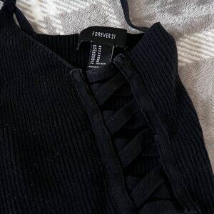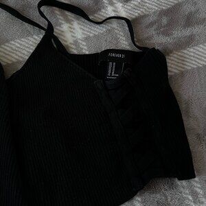 Forever 21 Black Ribbed Lace-Up Crop Top – Edgy & Versatile ✨