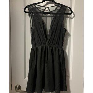 Forever 21 Black Sheer Plunge Mini Dress M – Silver Sequin Party Cocktail Dress