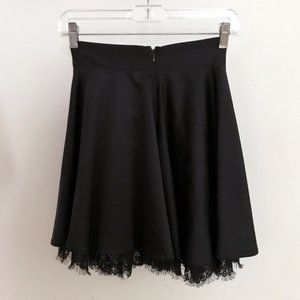 Black circle skirt with satin finish, lace details and concealed back zipper in size xs (extra small).
