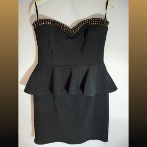 Forever 21 Black Studded Strapless Bodycon Peplum Dress Size Large