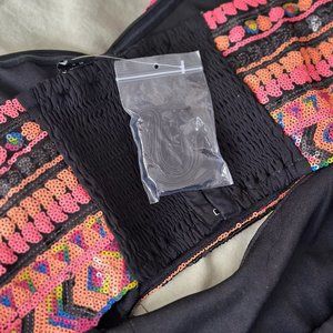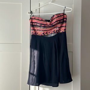 Forever 21 Black and Pink Patterned Sequin Cut-Out Mini Dress