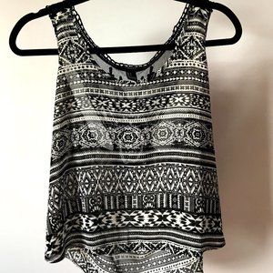 Forever 21 Black and White Tribal Print w/ Lace and Mesh Back Detailing