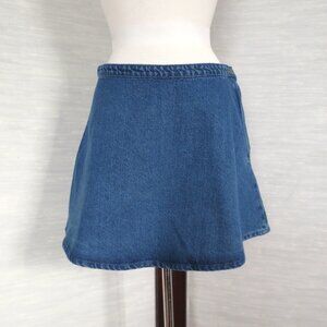 Forever 21 Blue Cotton Denim Jean Flare Skater Miniskirt