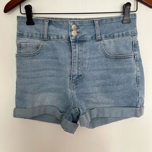 Stylish denim blue women's shorts perfect for casual outings. Enjoy comfort and style with these versatile shorts. Size 27 EUC