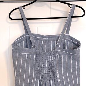 Stylish mini dress with vertical stripes. Button-down front. Spaghetti straps. Perfect for casual outings. Size: M-L
