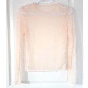 Blush dotted mesh sheer top with a crew neck. The material is really soft and definitely won't itch!