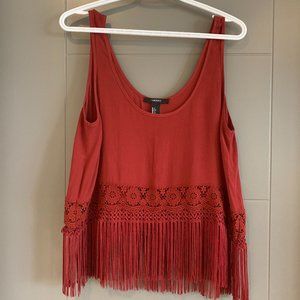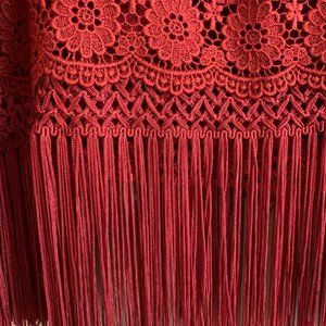 Beautiful embroidered flowers and fringe fall just below hips (I'm 5'5").
