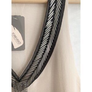 Forever 21 Boho Sleeveless Blouse V-Neck Embellished Beaded Trim Layer Tank Top