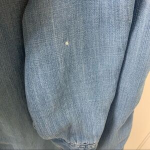 Great pre-worn condition. There are some inconsistencies in the colour around the pocket area and a spot on the sleeve.