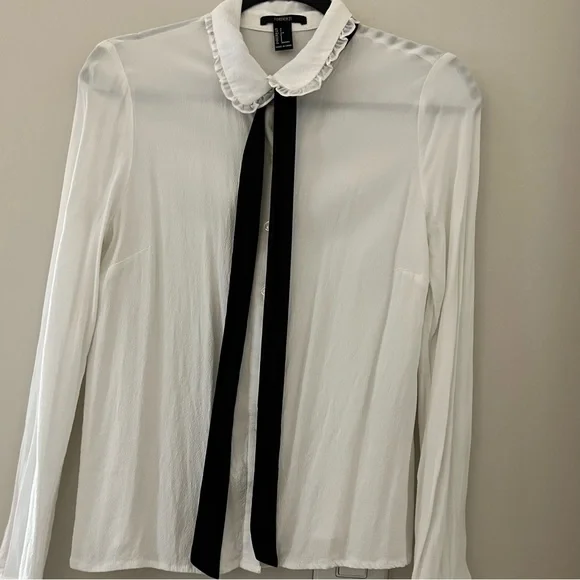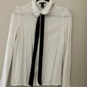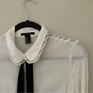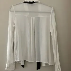 Missing one button but otherwise great condition. Sheer material with attached black scarf. Beautiful frill detailing around the neck. US Small, UK Small 💜