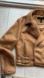 Chic camel leather jacket with zipper details. Features buckle accents for a modern look. Order fast before it’s gone.