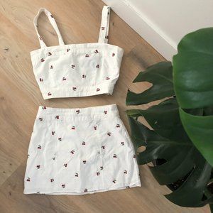 Worn once, in great condition and sooo cute. Quality is great. I bought this back when their stuff was still good. Fabric is thick and sturdy and the cherries and embroidered on.