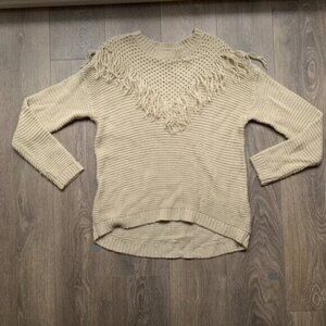 Forever 21 Chunky Knit Sweater Pullover beige Fringe detail
