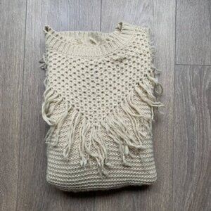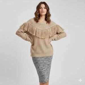 Forever 21 Chunky Knit Sweater Pullover beige Fringe detail